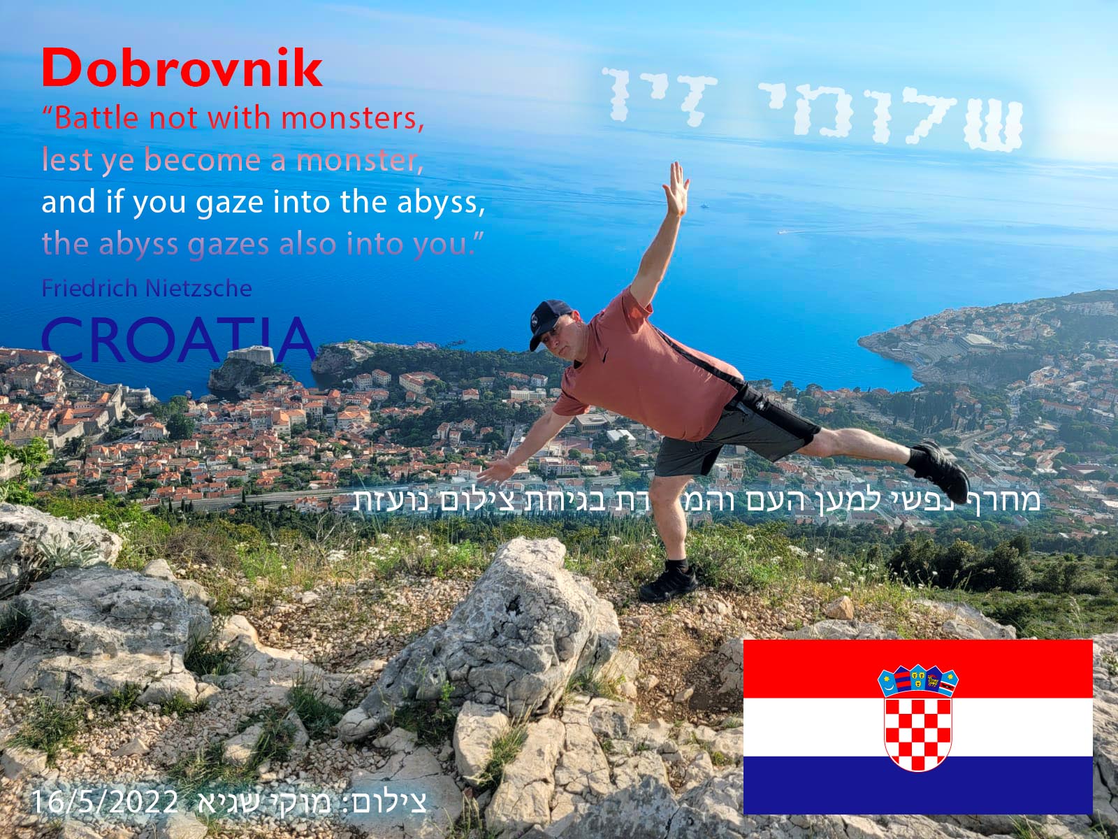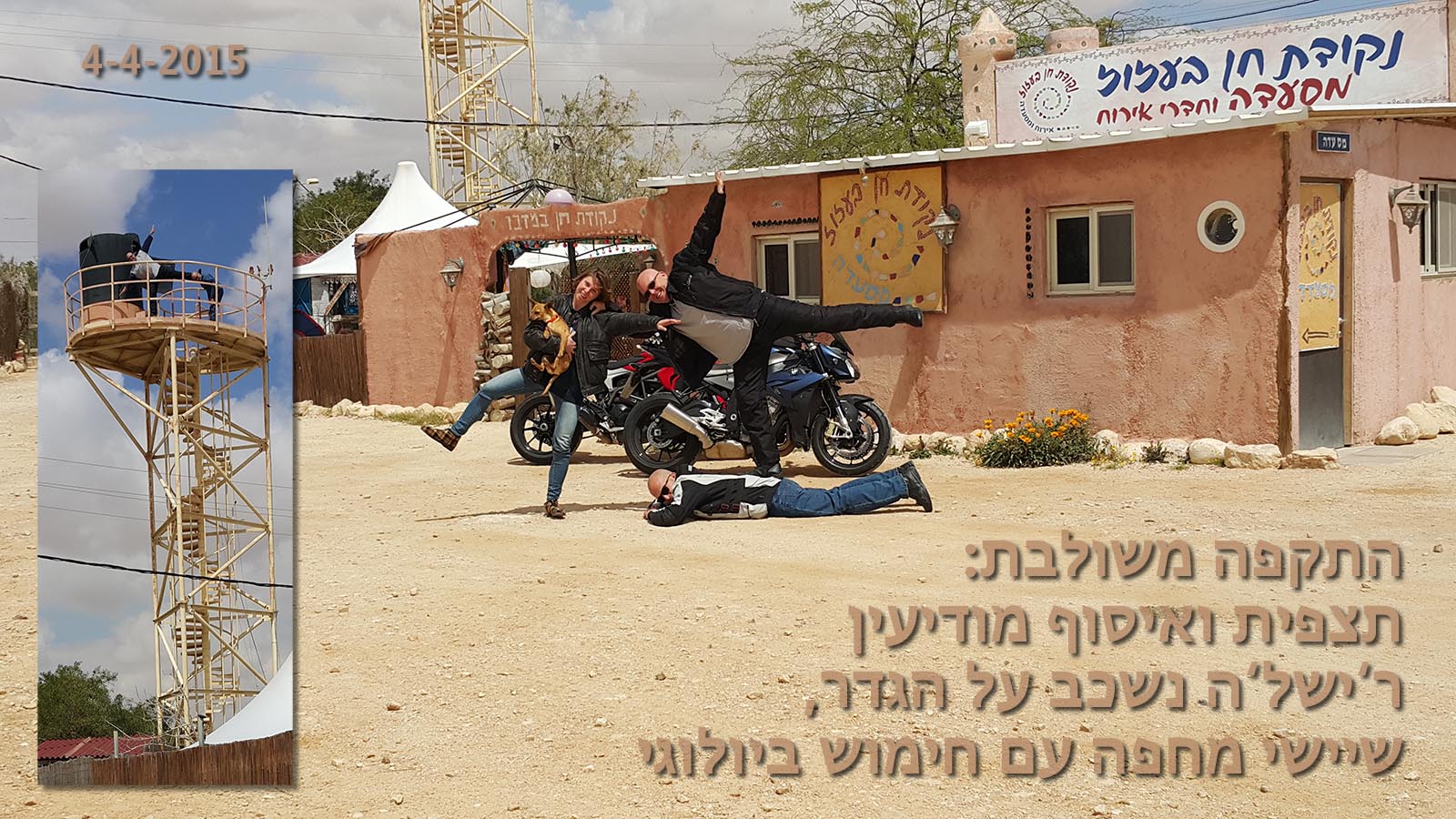 את הרעיון לתנוחה שאבתי מאיזה בחורצ'יק- לא זוכר את העדה ולא הלאום, אליו נחשפתי במצגת או סרטון יוטיוב, כשצילם עצמו בתנוחה זו בכל מני מקומות בעולם.