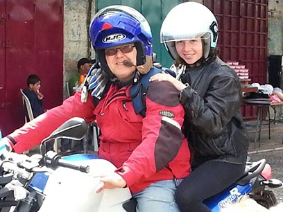 שלחתי לחביירו תמונה של בתי, אופנועו ואני כשהיינו בחומוס סעיד בעכו.